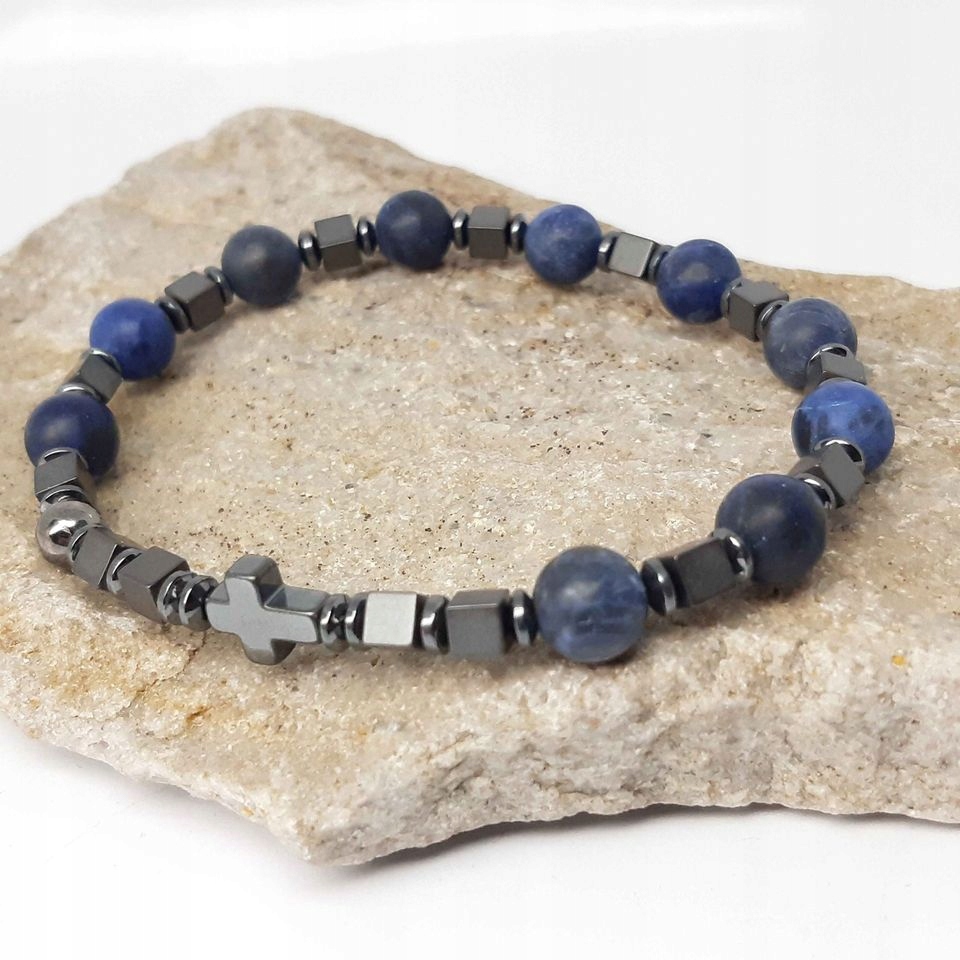 з гематитовим хрестом, на міцній ювелірній резинці.