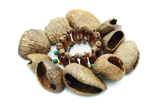 Бчас-час — це ударні інструменти, які можна носити на руках або ногах і при струшуванні видають звуки. Вони зроблені з фініків і дерев'яних намистин, які нанизані на гумку. Фініки - це природні звукові матеріали, які створюють глибокі, приглушені звуки. Handicrafts Indonesia.