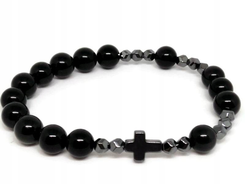 БРАСЛЕТ ЧОЛОВІЧИЙ РОЗАРІЙ 10 ДЕСЯТКІВ НА РУЦІ камінь ОБСІДІАН k0452