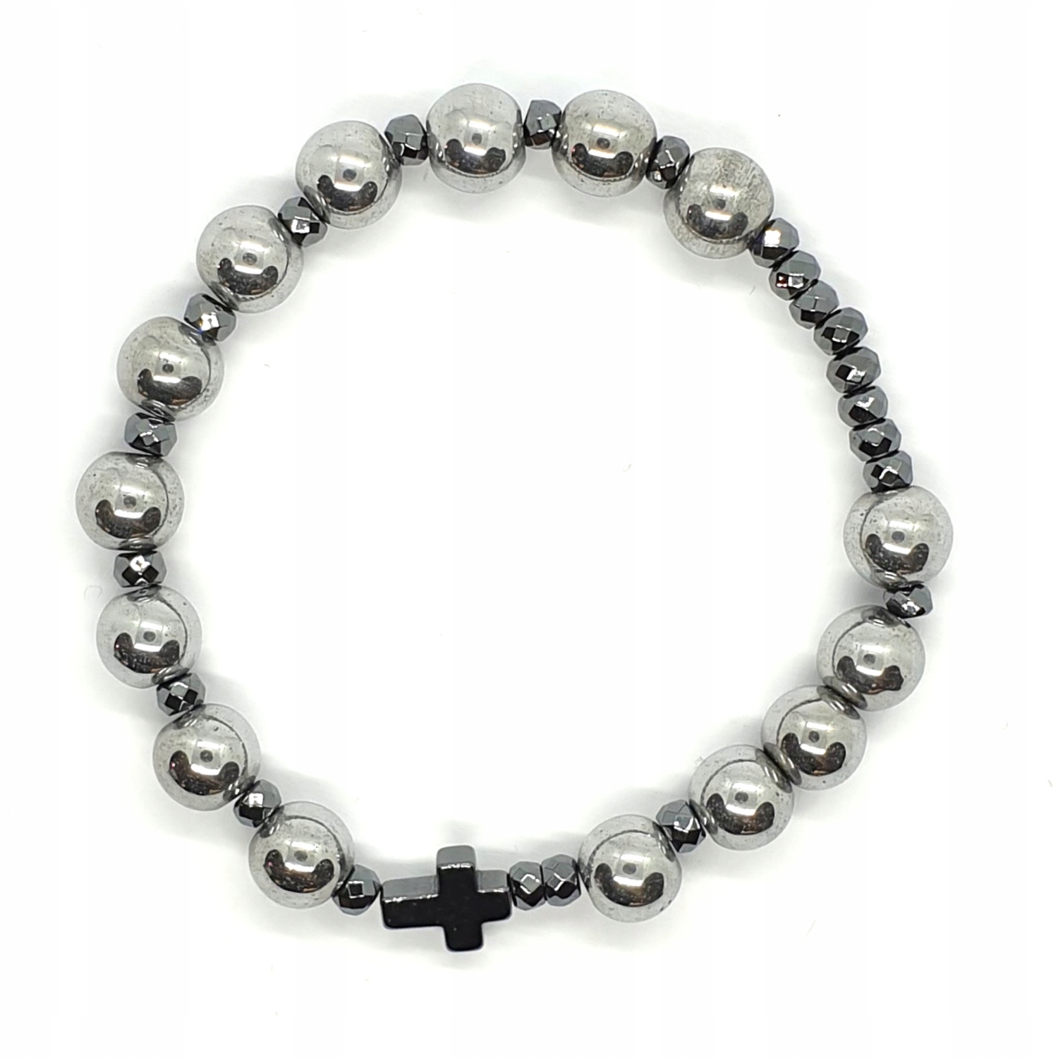 Графітовий гематит:хрестик 10x8 мм і грановані проставки 4 мм