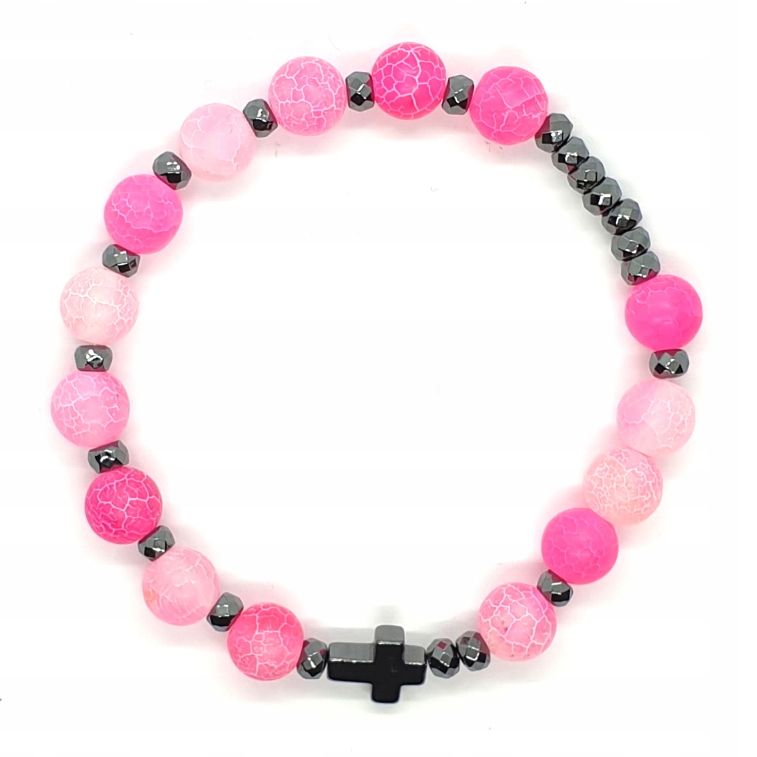 Браслет Чотки на зап'ясті Агат Гравований Фуксія