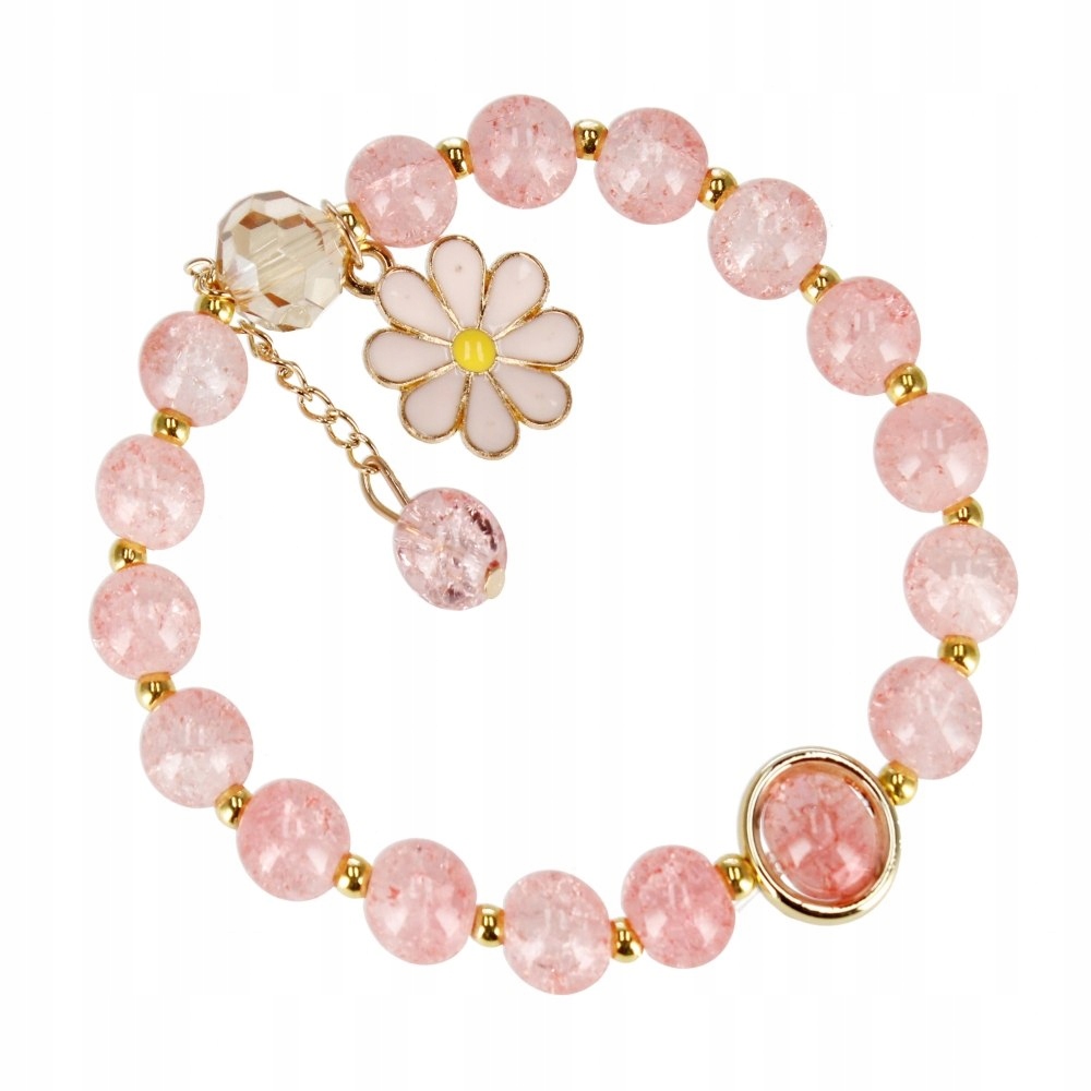 Ми пропонуємо чудові браслети з підвіскою у формі квітки чотирьох ніжних кольорів: білого, рожевого, синього та різнокольорові.