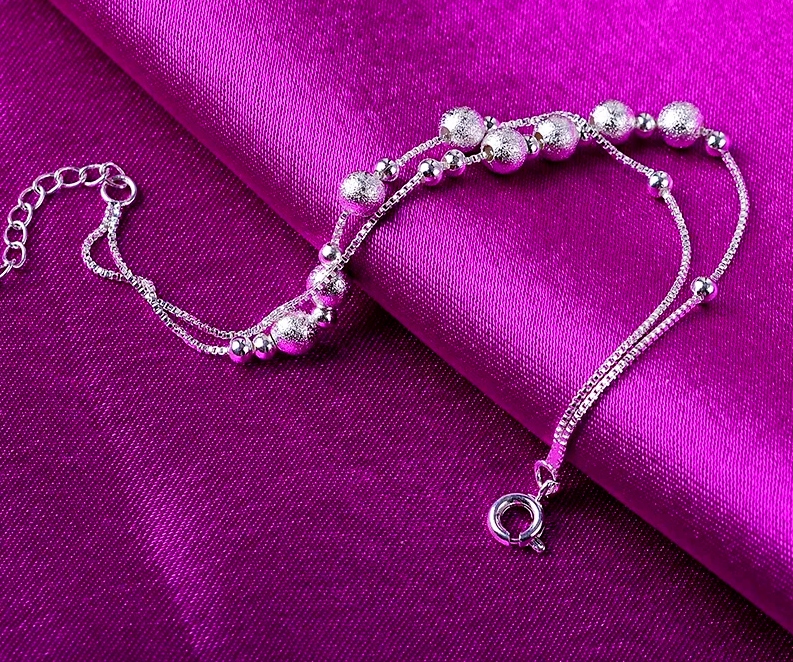 Браслет для дівчат подвійний 925 срібних подвійних матових кульок