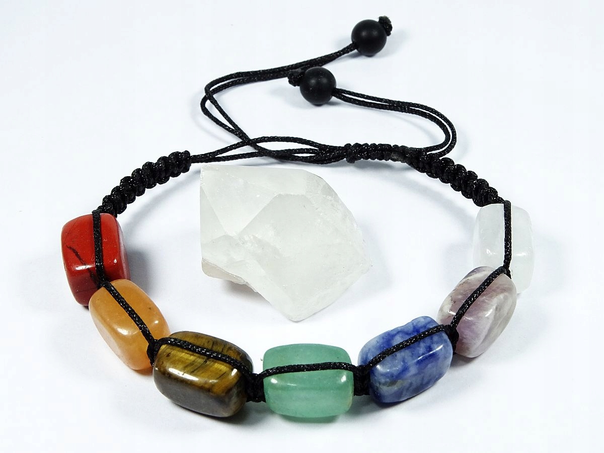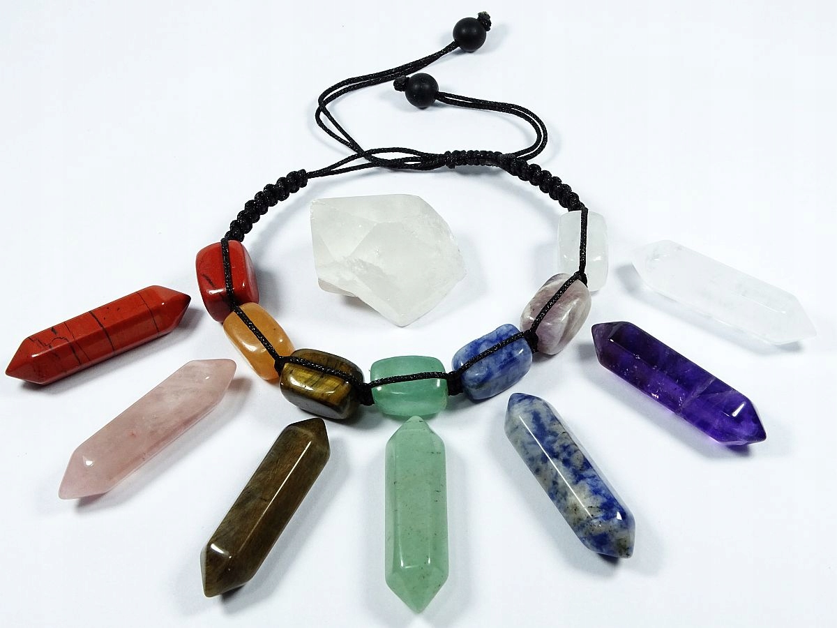 Браслет із семи чакр, сім мінералів, полірованих з обох боків, а також необроблений гірський кришталь із натуральним шипом із Бразилії.