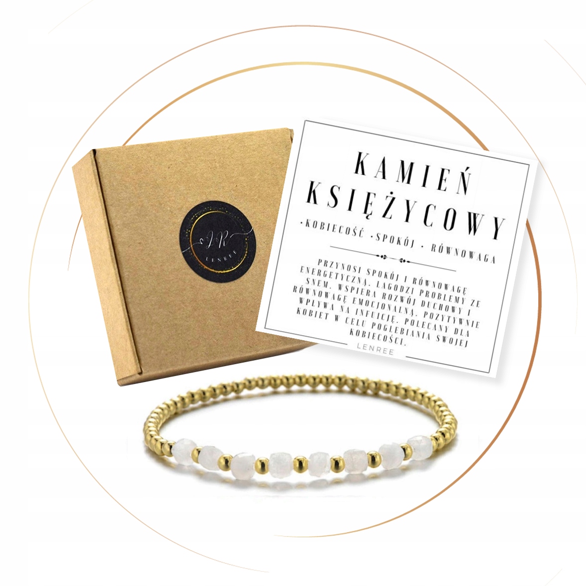 ЖІНОЧИЙ БРАСЛЕТ НАТУРАЛЬНЕ КАМІННЯ МІСЯЧНИЙ КАМІНЬ ЗОЛОТИЙ ГЕМАТИТ ПОДАРУНКОВА КОРОБКА