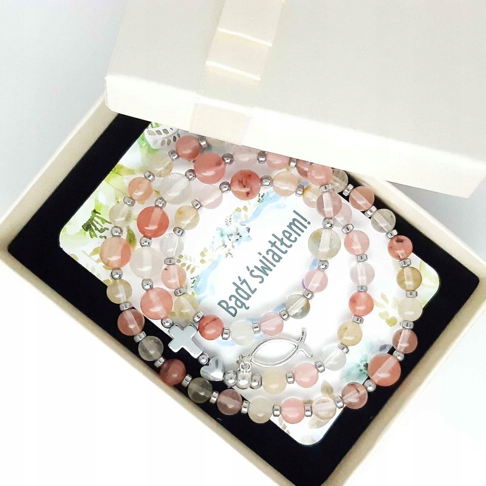 Браслет РОЗАРІЙ на замовлення, камінь Кварц, Причастя, Конфірмація
