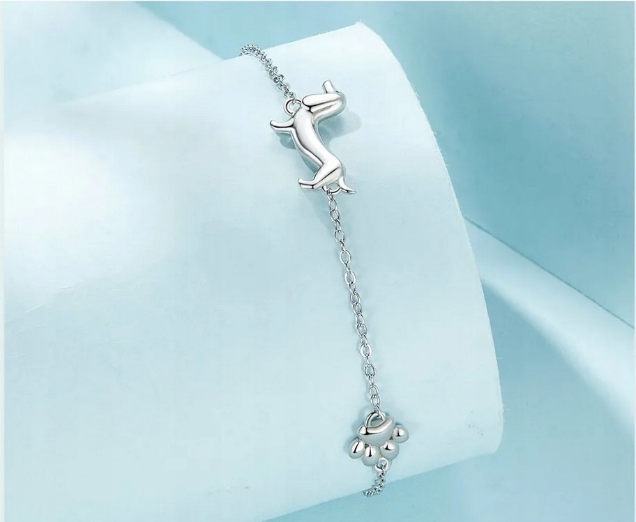 Браслет СОБАКА такса лапа срібло S925 + коробка