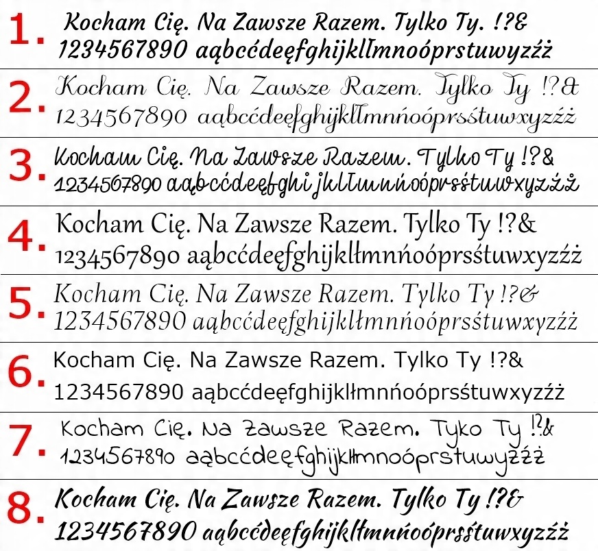 УВАГА! Надайте дані гравіювання у зрозумілій формі, наприклад колір браслета, номер шрифту та текст.