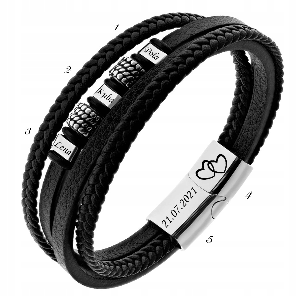 ⚪️ Браслет із гравіюванням виготовлено з чорної натуральної шкіри та найякіснішої хірургічної сталі 316L.