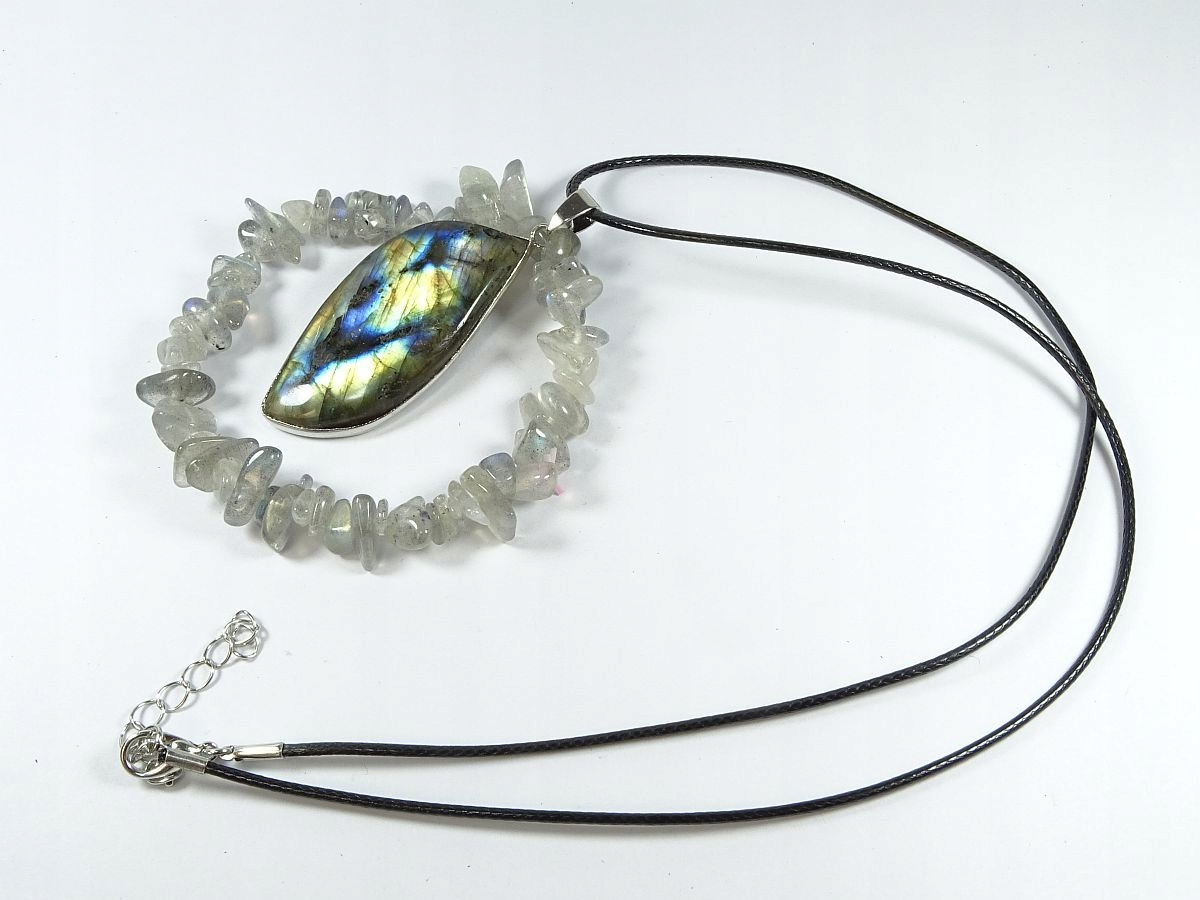Labradoryt Bransoletka Wisior Zestaw Komplet Prezent - 100k -