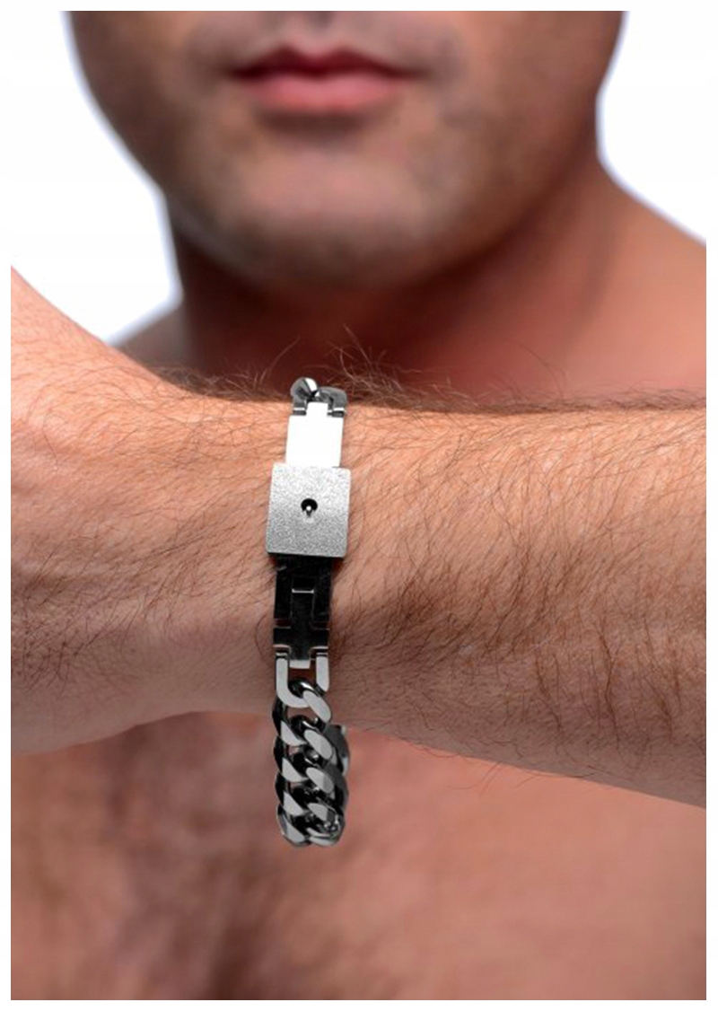 Переконайтеся, що ваша іграшка ніколи не забуває, що вона ваша! Привабливий і тонкий дизайн цього набору браслета та ключів робить його ідеальним для щоденного нагадування про ваші стосунки з DS! Високоякісна титанова сталь утворює браслет-ланцюг із хромованим замком, вбудованим у застібку, аксесуар, який може зняти лише їхній Господар чи Господиня.