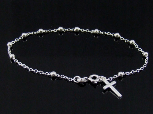 Ніжний браслет у вигляді десятки чоток з хрестиком. Застібається за допомогою обшивки.