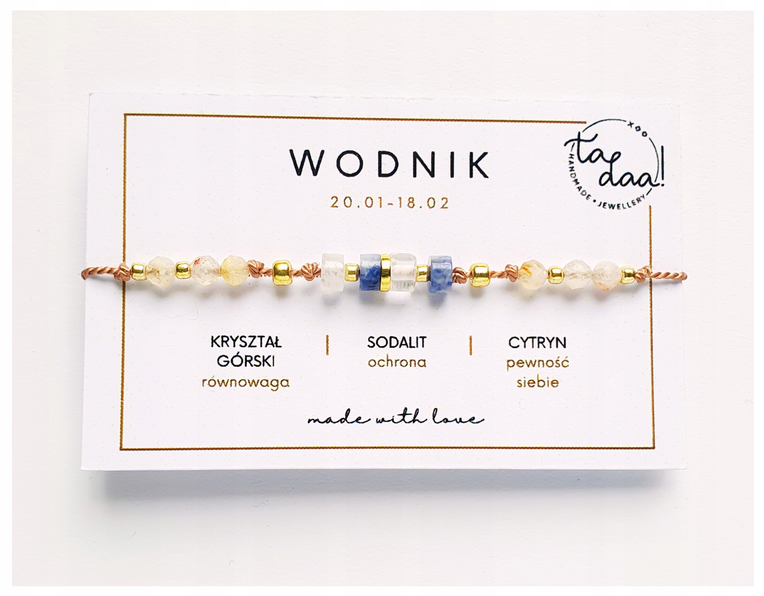 Bransoletka Znak Zodiaku WODNIK KAMIENIE NATURALNE złota/srebrna + prezent*