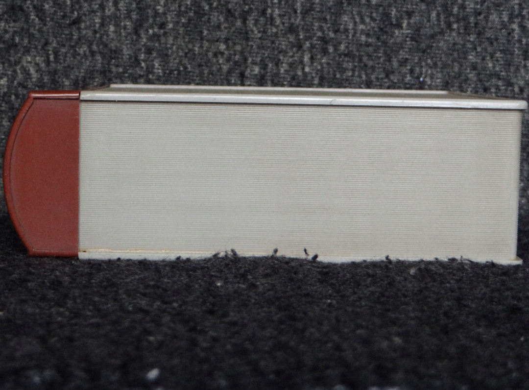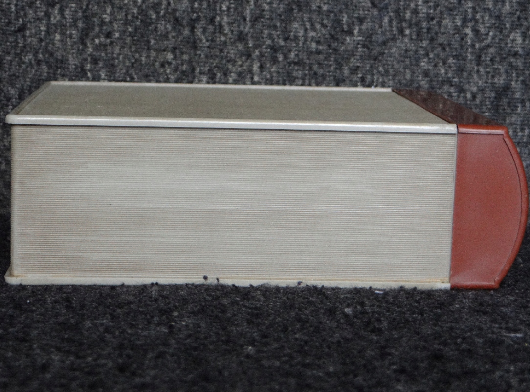 Використовувана пластикова коробка, що розміщує три слайд -склади для слайдних проекторів Braun Nurnberg, система Paximat. У ньому розміщені ті короткі журнали, які входять у 36 слайдів. Журнали Revue також відповідають цій коробці, дуже схожим на Браун по 36 слайдах кожен. Він має ознаки використання у вигляді бруду та подряпин, але це ціле, без тріщин.