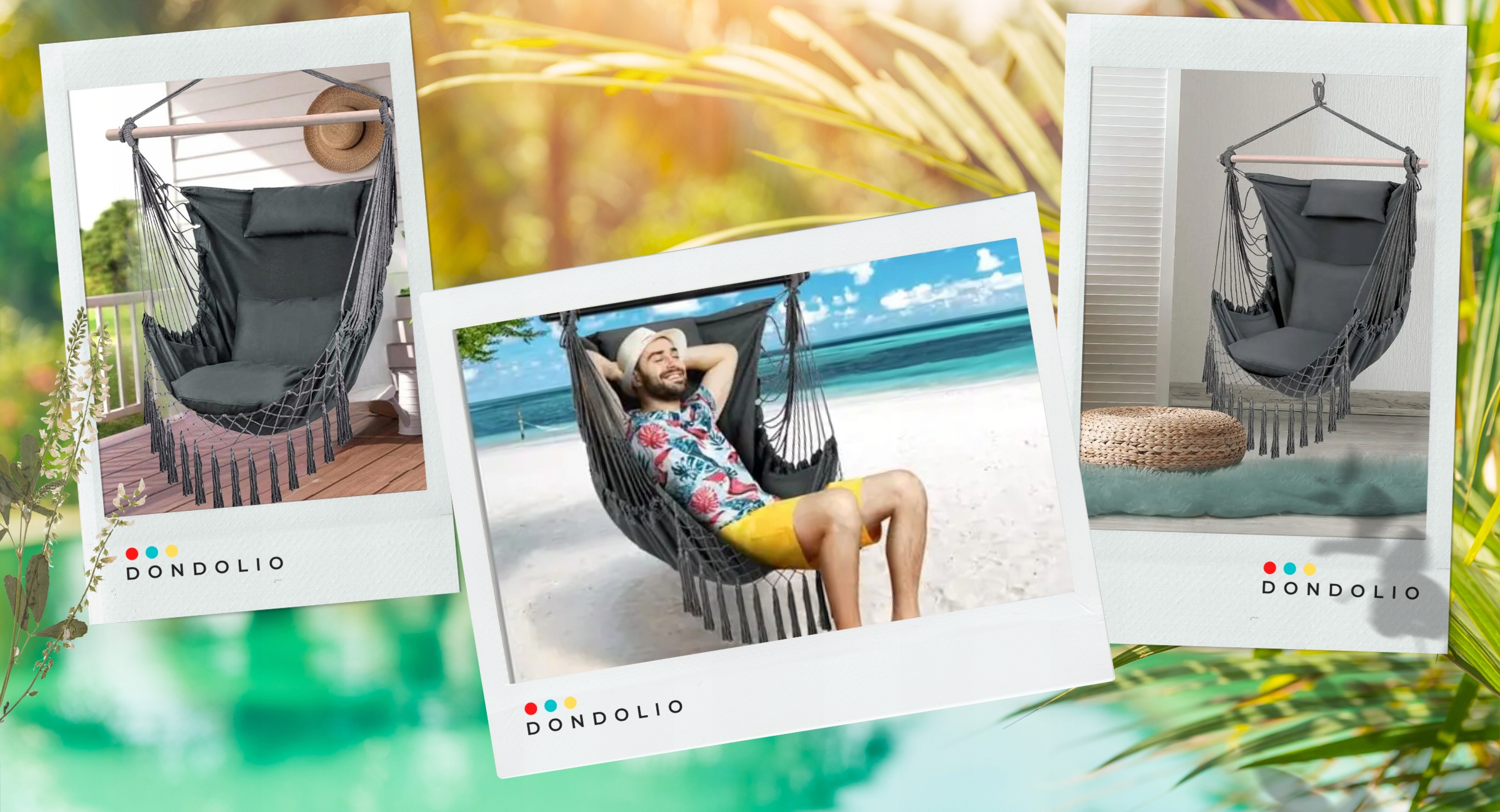 Бразильський стілець, що підвішується, Дондоліо має 3 подушки та розміри кришки 130x100 см