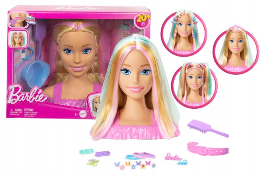 Барбі голова для укладання русявим волоссям та понад 20 аксесуарів, включаючи шпильки зірок та метеликів, що змінюють коміри, безпека: невідповідні для дітей до 36 місяців. Невеликі деталі. Довге посилання. Небезпека створення зачісок з цією барвистою головою для стилізації Барбі Барбі має світле волосся з барвистими, пастельними яскравими мотивами в відтінках рожевого, помаранчевого та бірюзи. Набір включає миску та губку, завдяки якій ви можете змінити колір шпильок Барбі, щоб відповідати їх веселковим волоссям. Серед інших барвистих аксесуарів - це щітка для волосся, смуги для волосся та манжети, завдяки якому ви можете вигадувати художні зачіски, ця голова укладання - чудовий подарунок для дітей віком від 3 років. Декоративні кольори та елементи можуть відрізнятися.