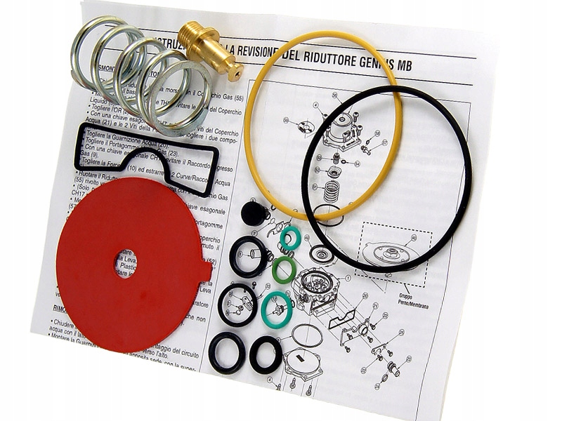 Ремонтний набір, призначений для регенерації редуктора BRC Genius MB. У набір входять елементи, що швидко зношуються, передбачені виробником для заміни під час регенерації випарника.