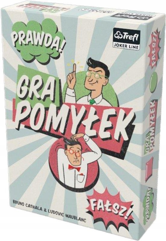 Перевірте себе в грі, в якій правильні відповіді не завжди доречні, і ці абсурдні гарантії успіху та розваги! Гра помилок - це швидка вікторина Бруно Катала та Людовича Маулланка, в якій усі гравці (зазвичай) знають правильні відповіді. Однак правильна відповідь - це не завжди те, що потрібно! Кожен гравець читає питання у своїй черзі. Коли він закінчує їх читати, він розкриває задню частину іншої картки. Цей зворотний визначає, чи відповідь на це питання повинна бути правильною чи ні. Звичайно, ви повинні відповісти якомога швидше! Гра містить два варіанти гри - індивідуальний та команда. Щоб розважитися, вам потрібно від 3 до 10 гравців старше 10 років. Гра помилок - це гра на кожен випадок: до паба, у подорожі, на вечірку, на вечір з родиною та друзями. Wiek: 10+