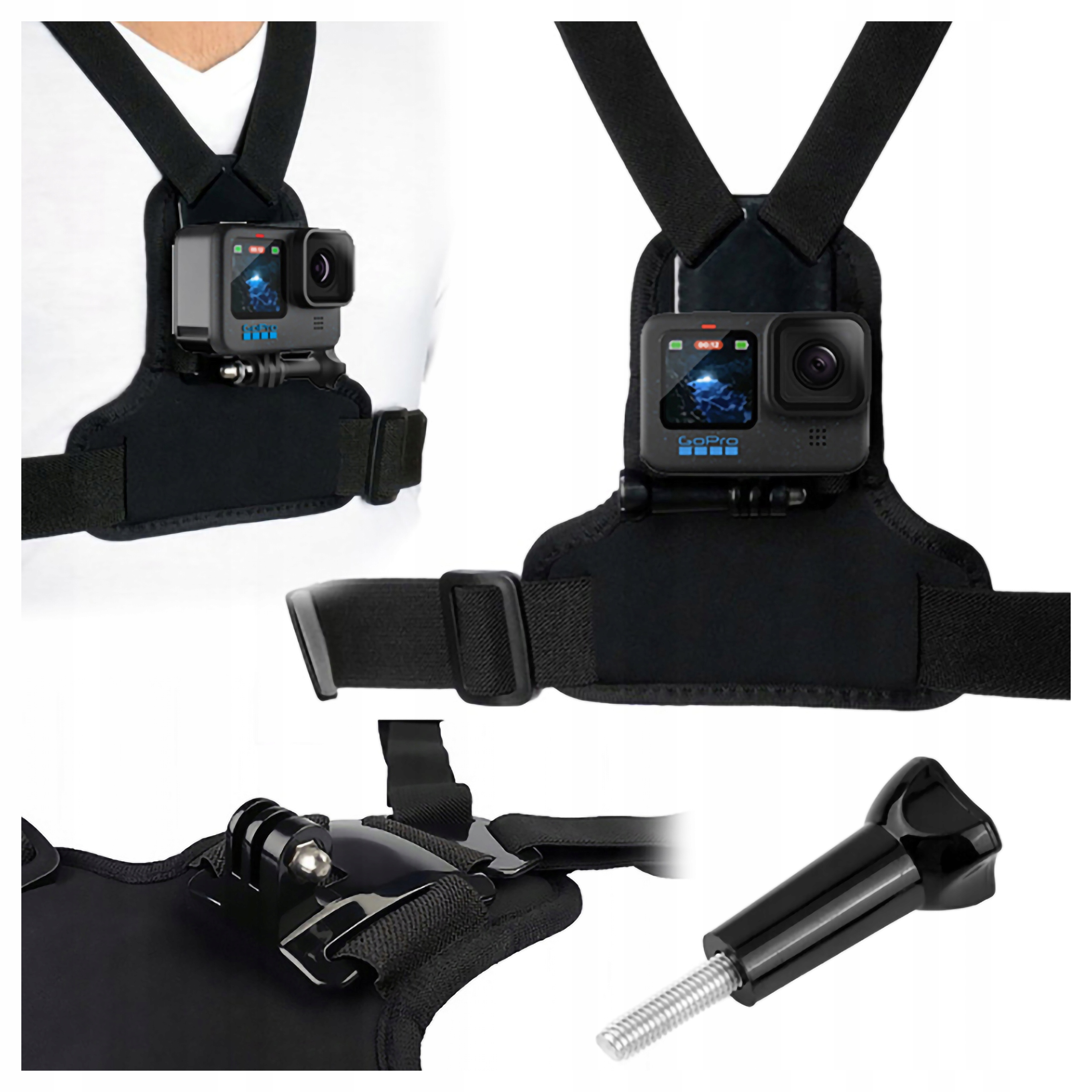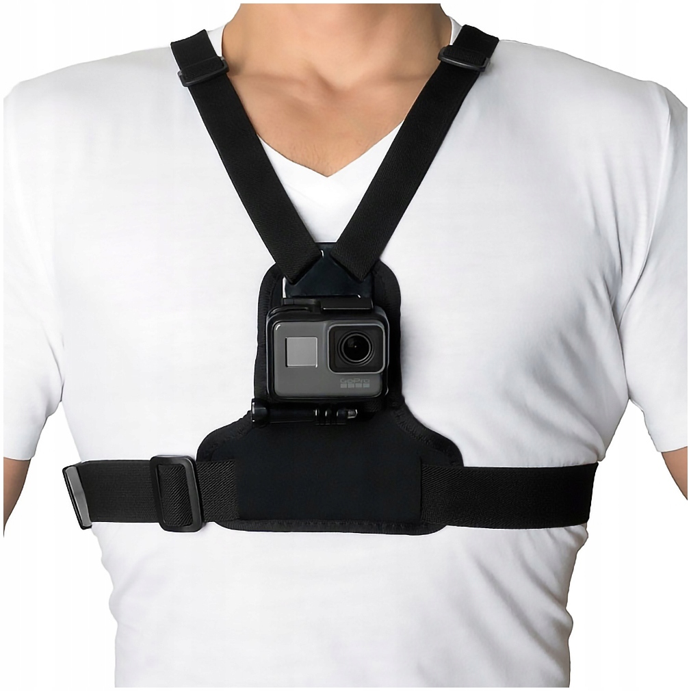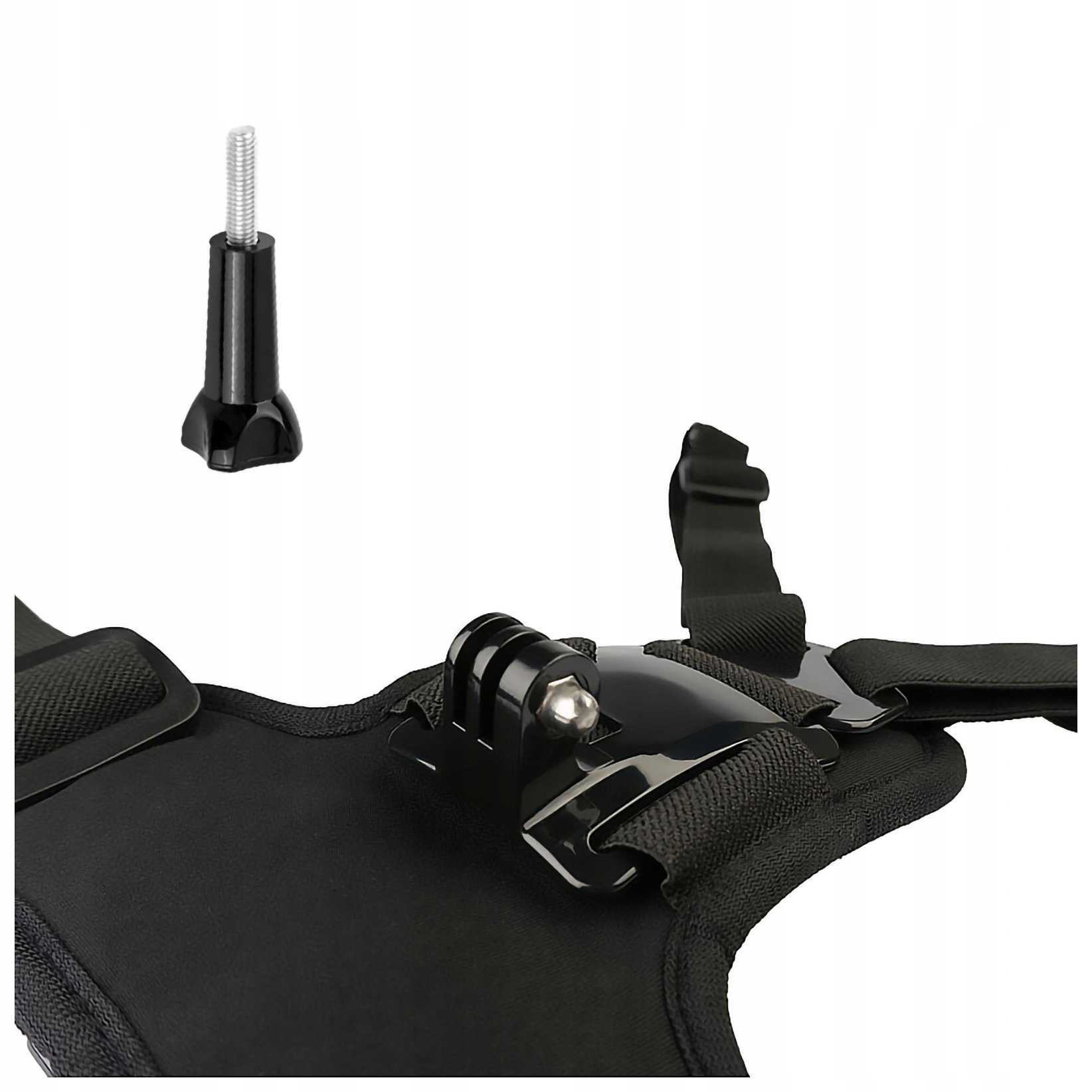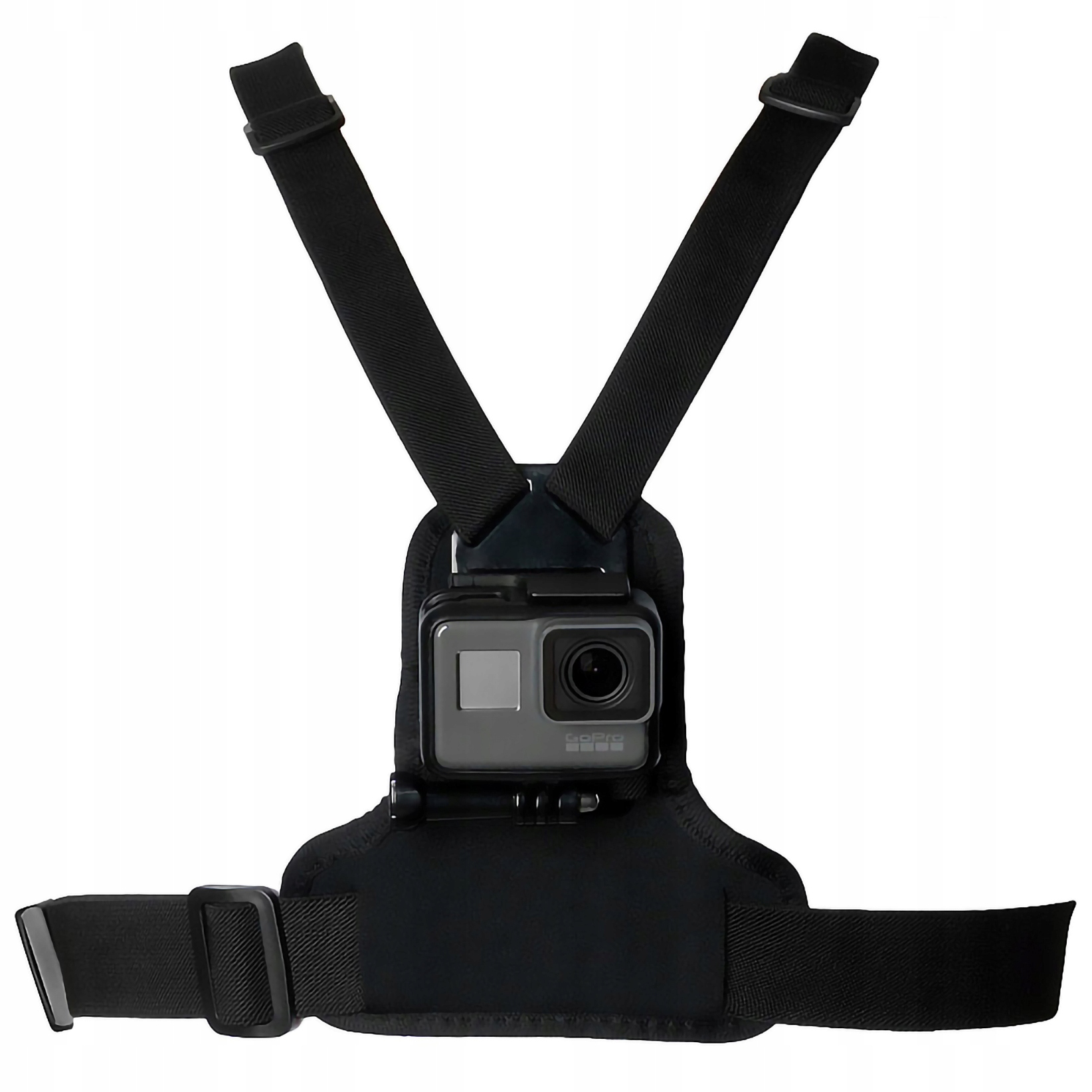 Кріплення камери в CHEST MOUNT ANTI-SHAKE — це один елемент, виготовлений із міцного матеріалу ABS і стабілізований за допомогою з’єднання трьох гнучких неопренових ременів.