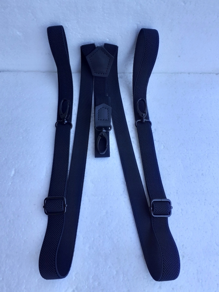 ЗГОТОВЛЕНІ З ЯКІСНОЇ ГУМИ. ВОНИ РЕГУЛЮЮТЬСЯ ДОВЖИНОЮ, А МІЦНІ ЗАСТІБКИ ДОБРЕ УТРИМУЮТЬ ШТАНИ НА МІСЦІ. ВСТАВКА ВИГОТОВЛЕНА З ВИСОКОЯКІСНОЇ ШКІРИ ЗЕРНИСТОСТІ ЧОРНОГО КОЛЬОРУ, ТОМУ ПОВ'ЯЗОК БУДЕ ВИКОРИСТОВУВАТИСЯ ДОВГО. МЕТАЛЕВІ РЕГУЛЮВАННЯ ТА КРАБІНИ ЧОРНІ. ГРОШОВІ ГАЧКИ БЕЗПЕЧНО НЕ ВИМКНУТЬСЯ. ГУМА ШИРИНОЮ 2 СМ. РОЗДІЛЕННЯ ДО 160 СМ.