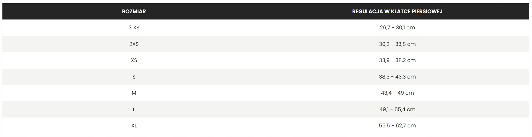 окружність грудей: 30.2 - 33,8 см