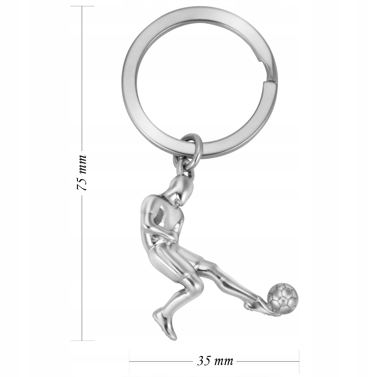 Брелок виготовлений з матового металу. На ньому зображено, як футбол б’є м’яч. 3D-мініатюра відображає кожну деталь фігури футболіста і виглядає дуже динамічно.