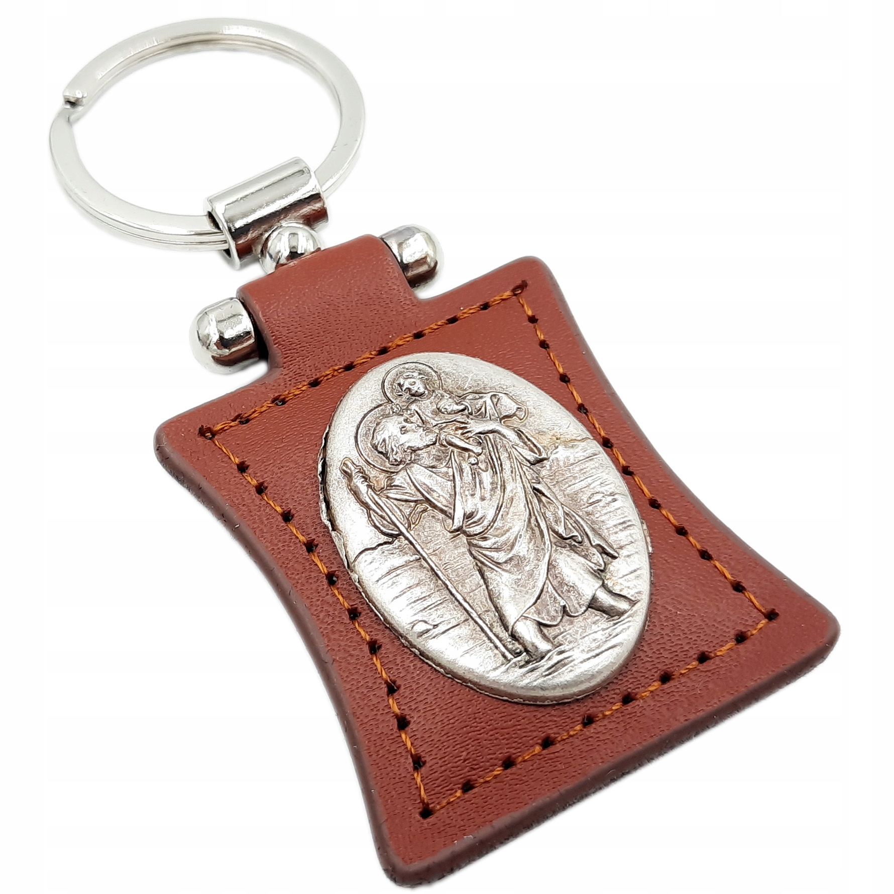 ✔️металевий образ св. Набір Krzysztof на коричневій шкірі
