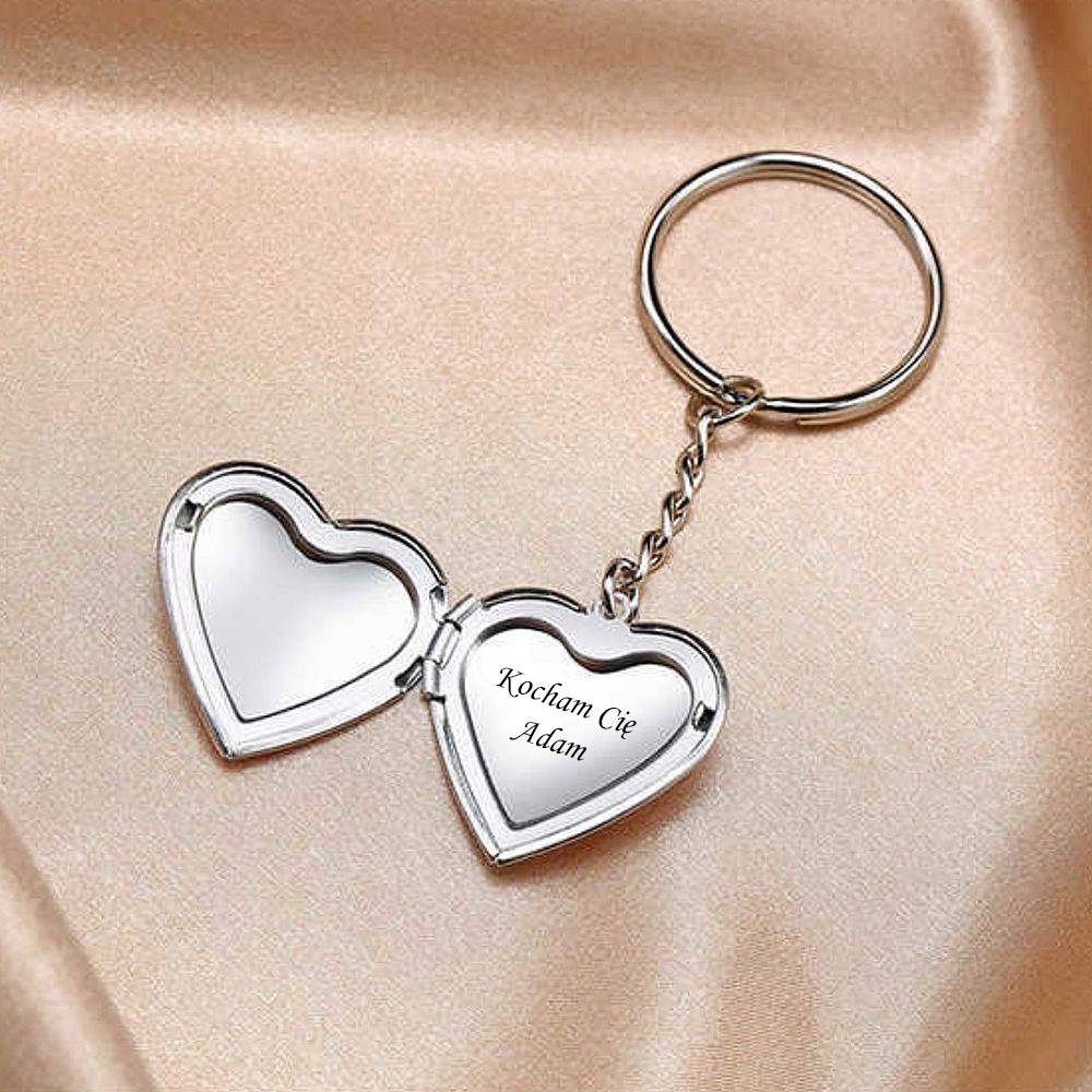 Унікальний, сентиментальний брелок, що відкривається, із відділенням для фотографій у формі серця, на якому можна вигравірувати: імена/дні народження дітей, братів і сестер або друзів.
