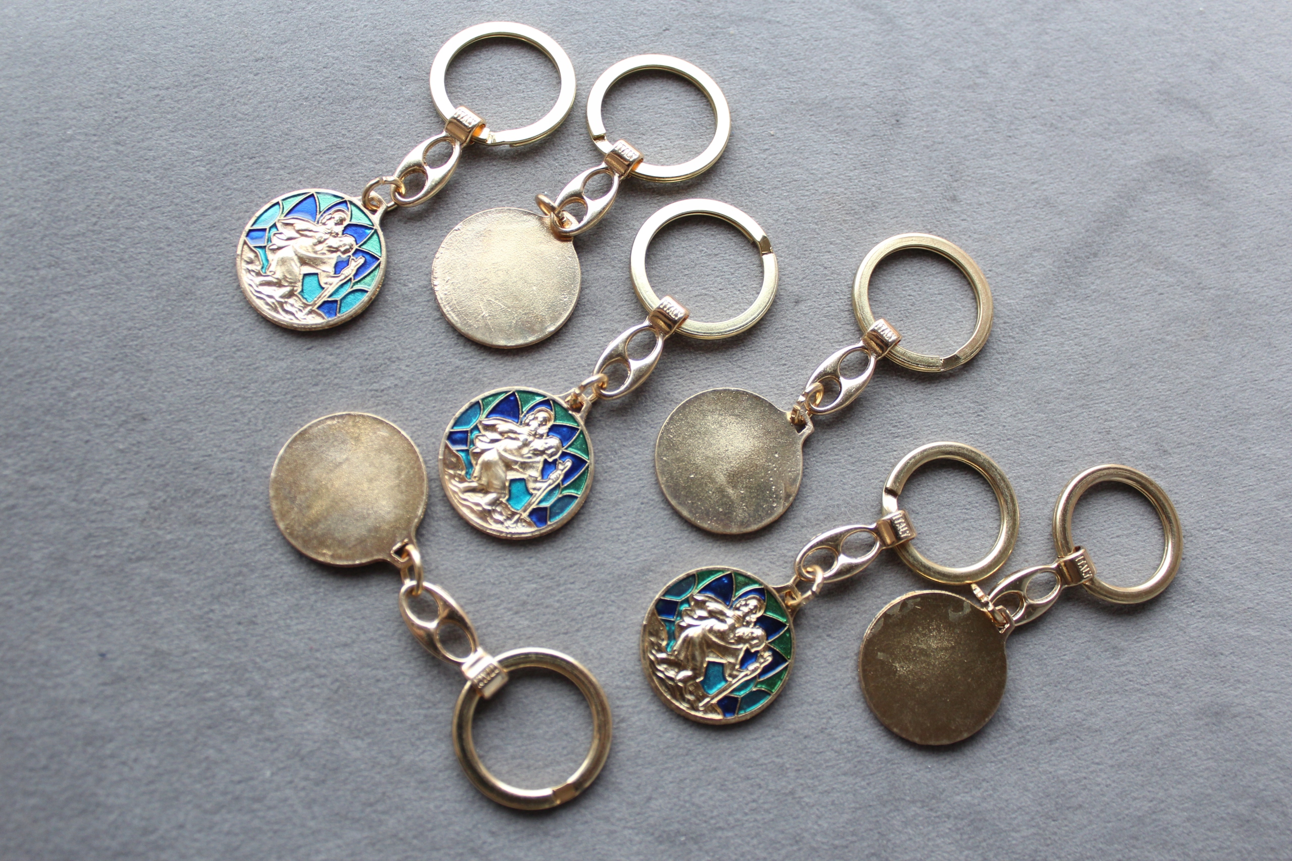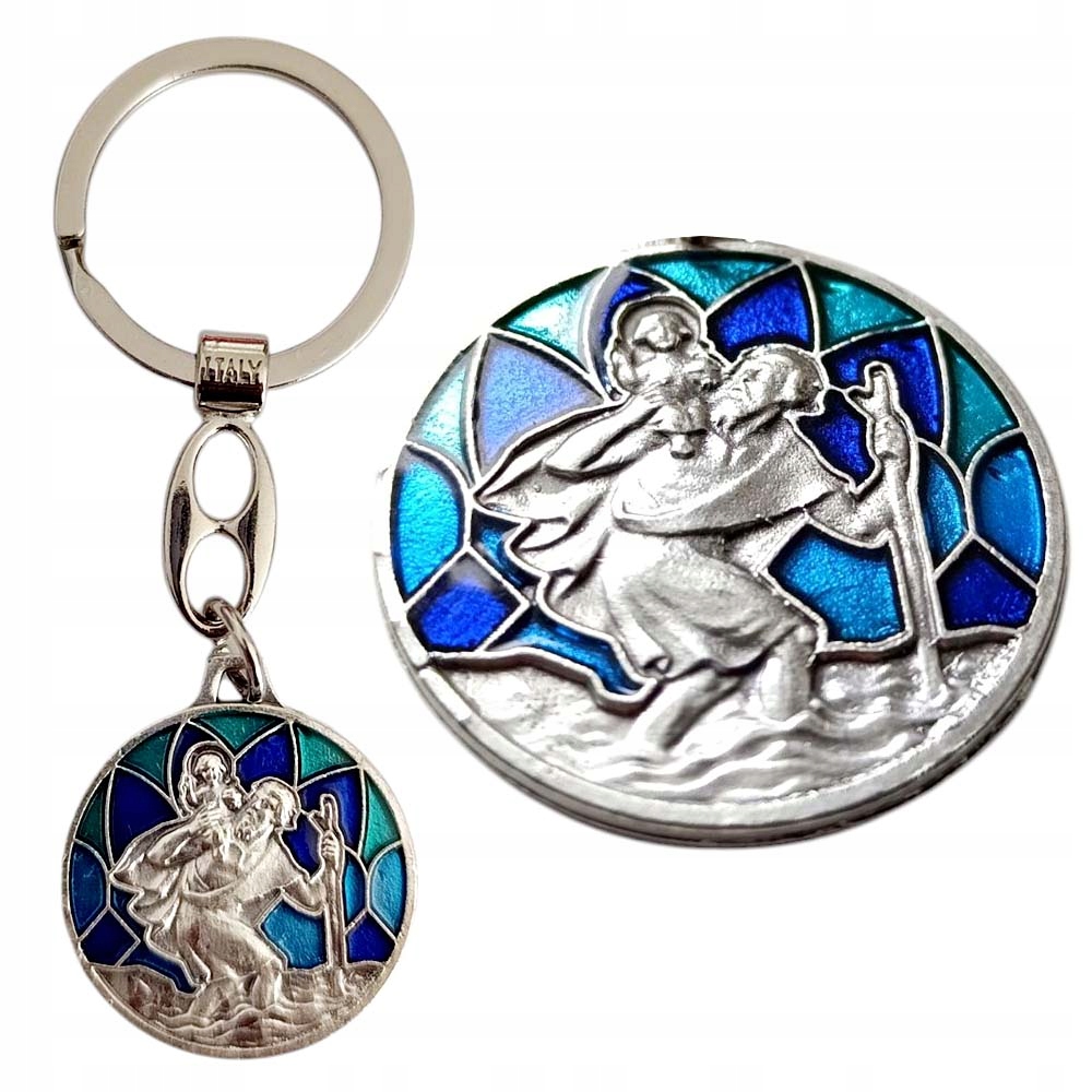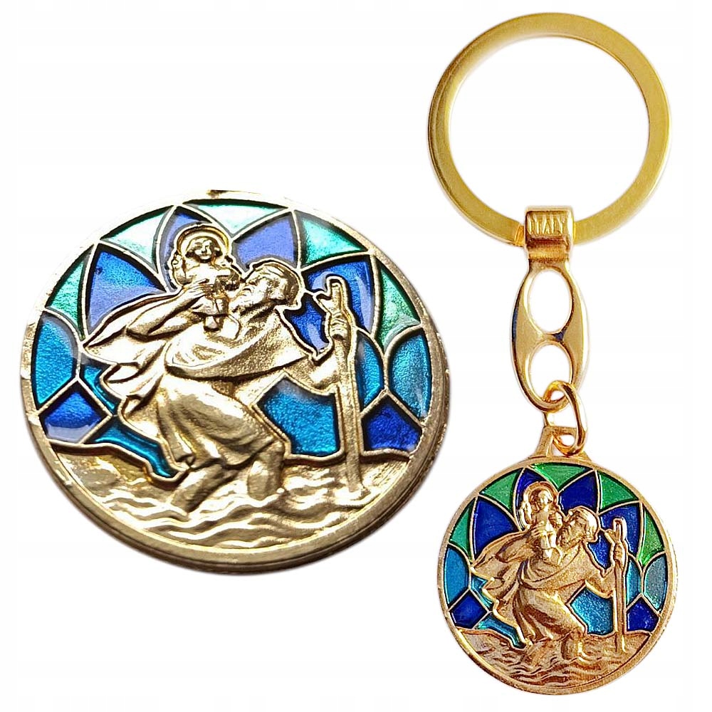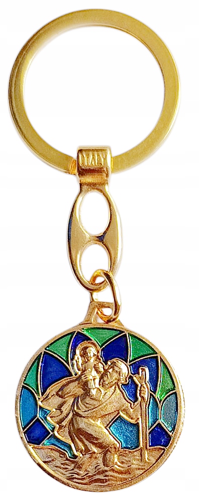 БРЕЛОК ДЛЯ КЛЮЧІВ СВ. КРИШТОФ ПОКРОВИТЕЛЬ ВОДІЇВ ЗОЛОТИЙ З ВІТРАЖЕМ ІТАЛІЙСЬКИЙ