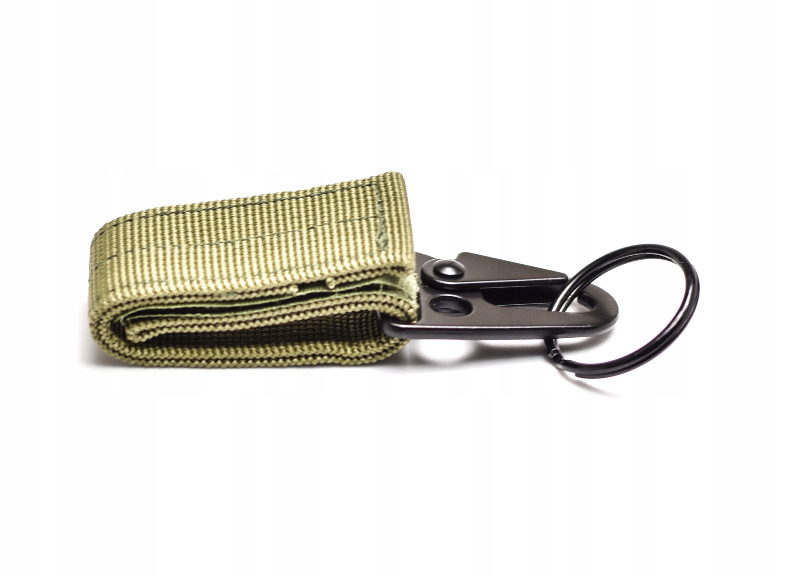 - виготовлений з нейлону, який характеризується високою стійкістю до стирання, розривів тощо. Карабін і пружинне кільце виготовлені з металу, який забезпечує довговічність і надійність в будь-яких умовах. Це ідеальний вибір для військовослужбовців, армії, туристів і людей, які цінують військовий стиль.