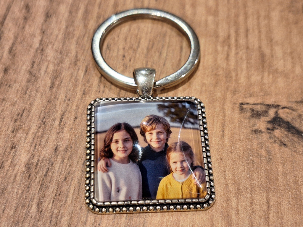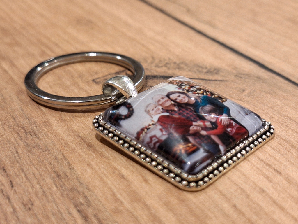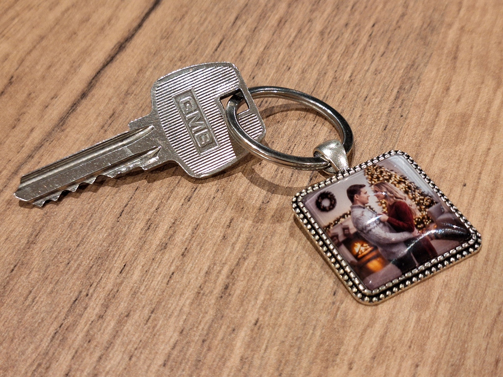 Квадратний брелок із завантаженими вами фотографіями, графікою та текстом