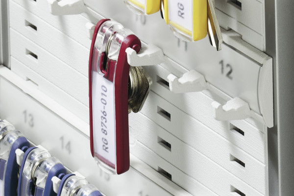 → Практичний затискний механізм полегшує доступ до етикетки у віконці етикетки, не виймаючи ключ із металевого кільця .