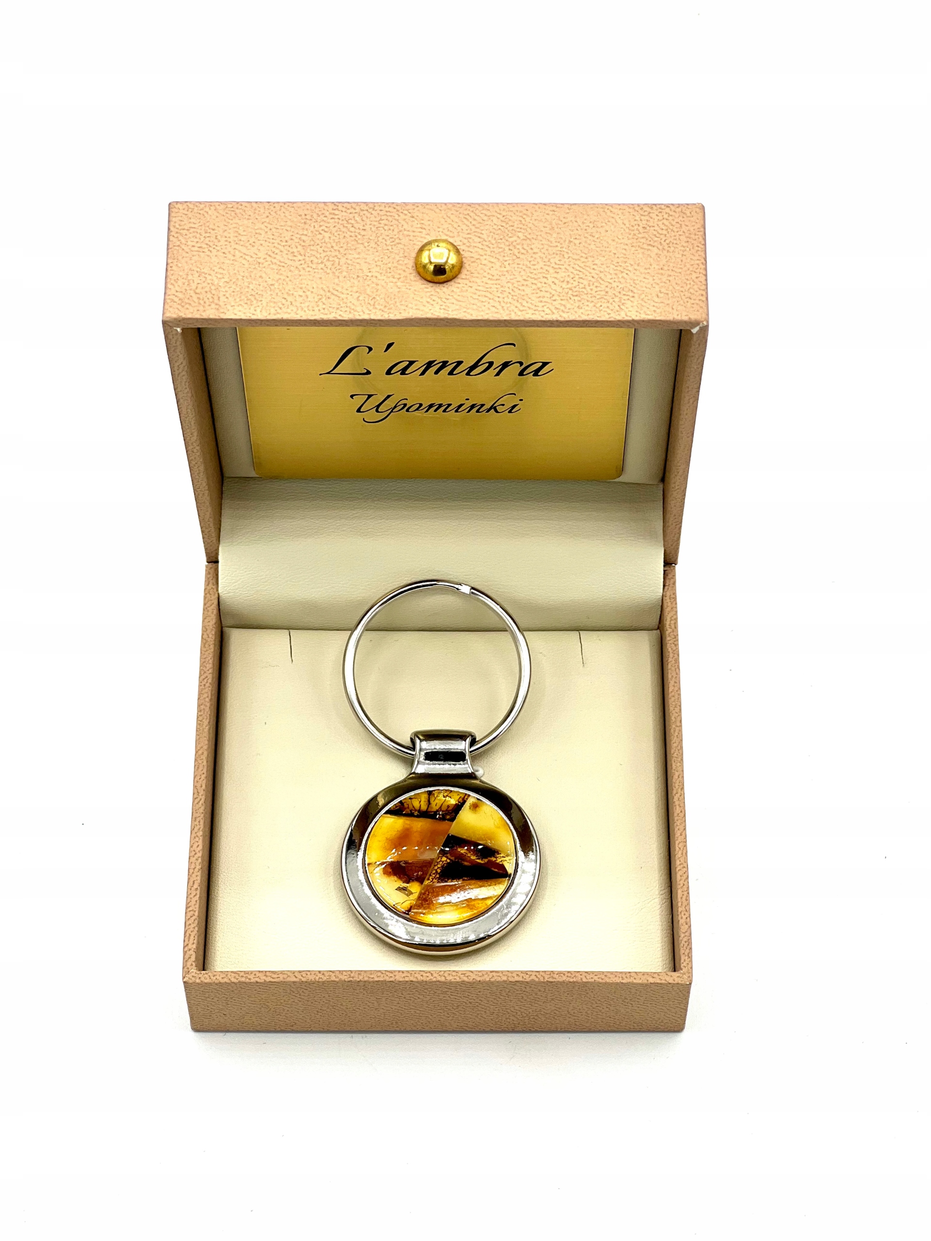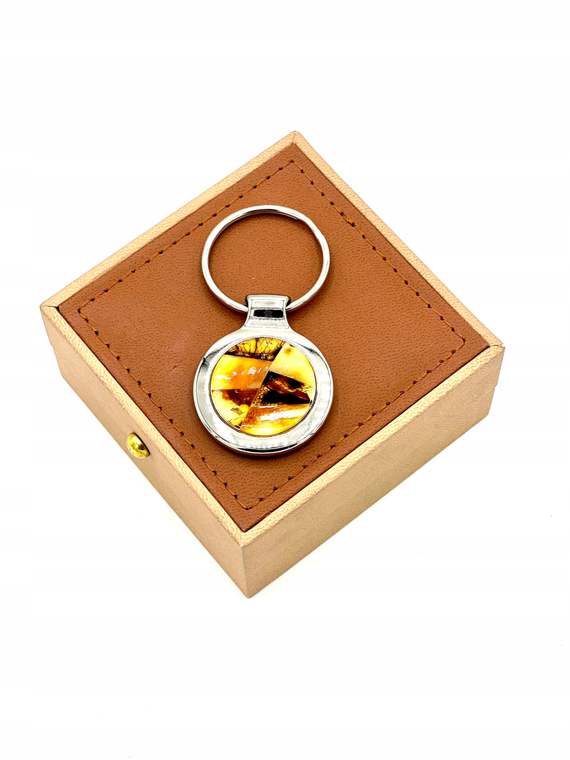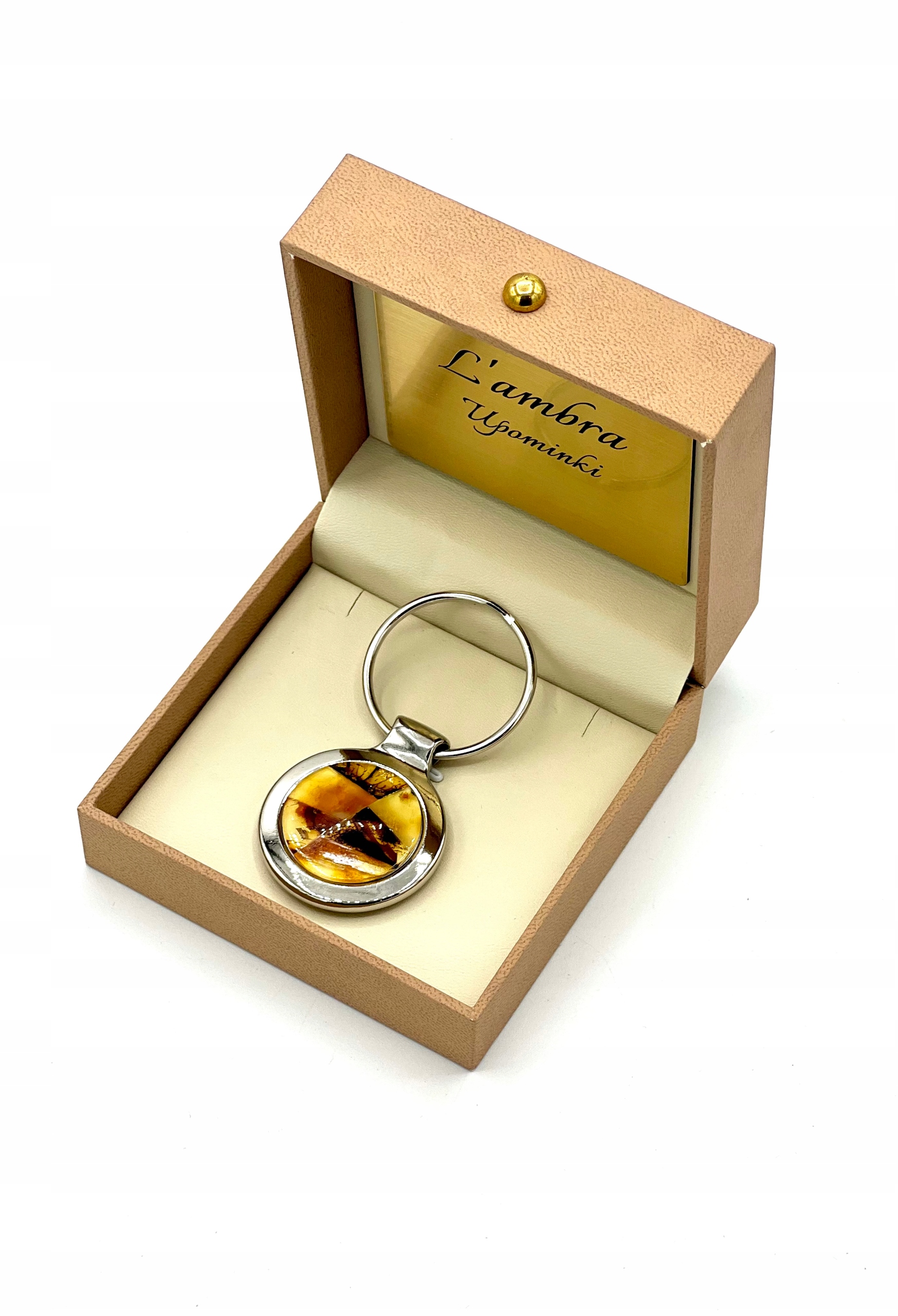 Brelok elegancki do kluczy z bursztynem w kształcie koła