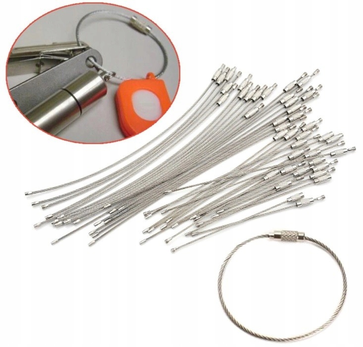 Металевий трос для кріплення ключів або інших дрібних предметів. Мотузка має різьбу, щоб її було легко закріпити.