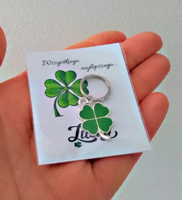 Чудовий брелок із чотирма листочками зеленої конюшини ідеально підходить як подарунок до школи, до Дня Святого Валентина однокласникам, студентам перед випускними іспитами чи іспитами від викладача, клієнтам як подяка за покупку та для багато інших випадків.