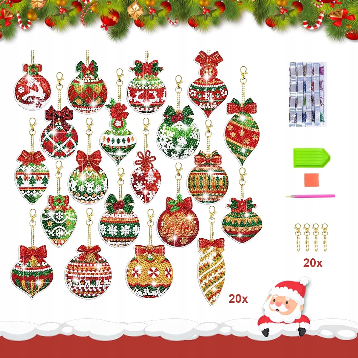 XXL НАБІР 20 ШТ. 5D БРЕЛУКІВ ДЛЯ ЯЛИНКИ ДИАМАНТОВА ВИШИВКА