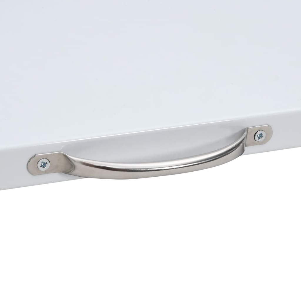колір: білий Матеріал: сталь Вага: 6,8 кг Розміри: 60 x 60 x 8 см (ширина x gł x висота) Універсальне застосування Оснащений висувною полицею Максимальне навантаження на каркас: 80 кг Максимальне навантаження на полиці: 4 кг