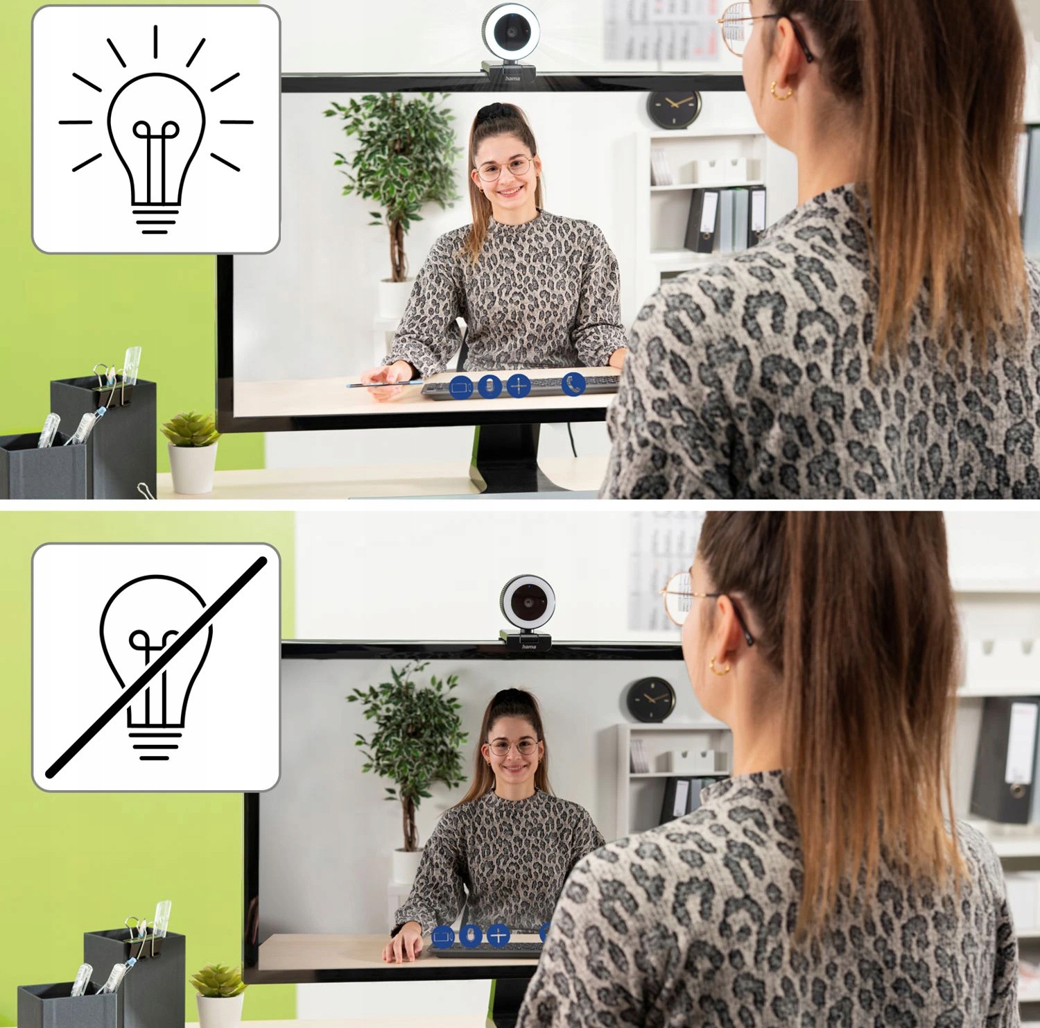 Практичною особливістю є вбудоване кільцеве освітлення. Забезпечить хороше освітлення і можливість регулювати яскравість і колірну температуру за допомогою сенсорного управління. Тож не турбуйтеся про вимогливі умови – навіть у погану погоду на вулиці ви будете добре освітлені. Це буде особливо корисно під час ігор і конференцій.