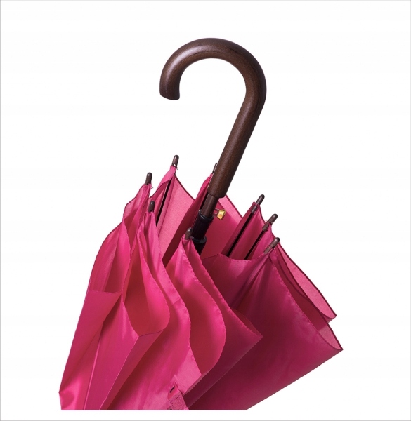 Парасолька WOOD - рекламна парасолька дуже хорошої якості. Він має дерев’яну вигнуту ручку та практичний автоматичний механізм відкривання.