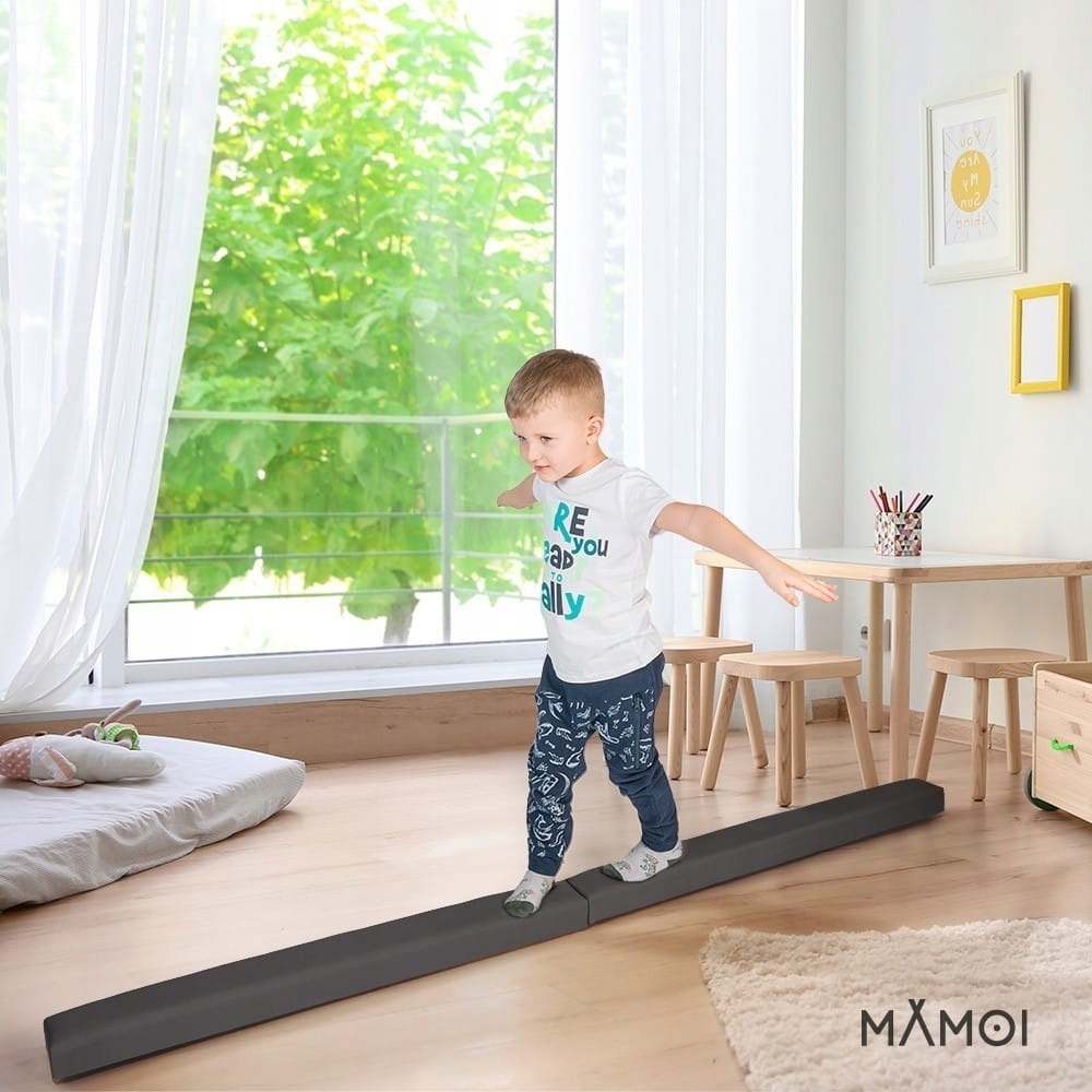 ✅ Опис товару: Дитячий балансир від MAMOI створений для дітей, які люблять рух і гімнастику. Проста конструкція дозволяє швидко підготувати і подальшу безпечну гру в кімнаті або вітальні. Дитяча гімнастична балка дозволяє ігри, тренування рівноваги, балету, стрибки, а також може використовуватися як єдиний елемент у різних стилях. Виріб складається, його легко носити та зберігати. Довжина дитячої гімнастичної балки 200 см. Ширина 10см. Дві дошки з’єднані міцним металевим шарніром. У розкладеному стані балка має висоту 5 см: тому висота є безпечною та дозволяє зручно балансувати. Гімнастична балка підходить для дітей від 3 років і витримує навантаження до 180 кг, тому іграшкою можуть користуватися і старші діти, і дорослі. Дерев'яний каркас оббитий міцним матеріалом, який також дуже приємний на дотик. Матеріал підійде для будь-якої дитячої кімнати і стане чудовим подарунком як для хлопчика, так і для дівчинки. Дно дитячої домашньої гімнастичної балки обшито чорним матеріалом і оснащено нековзкими пластиковими накладками.