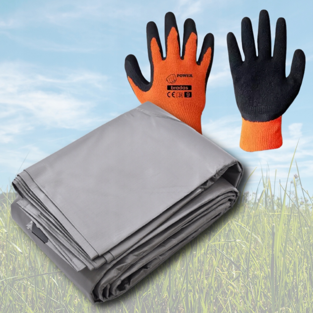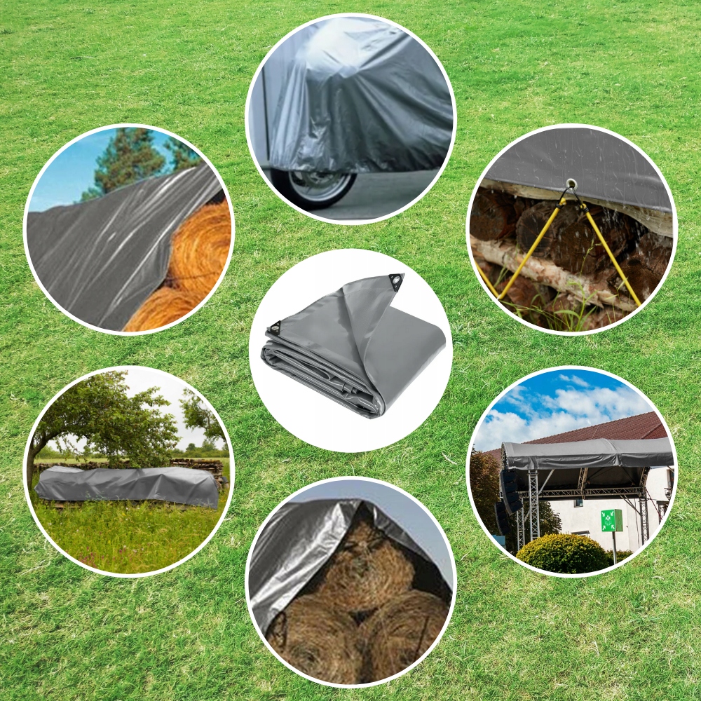 Матеріал, з якого виготовлено брезент, є водонепроникним і має УФ-фільтр. /b> а також стійкий до мінливих погодних умов, як-от дощ, сніг або мороз.