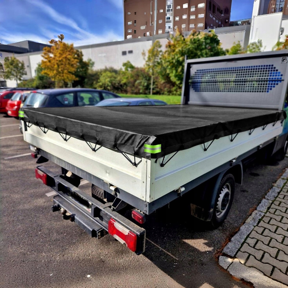 Плоский брезент виготовлений з високоякісного матеріалу Oxford 420D, який є водонепроникним, стійким до сліз, стійкого до споживання та багаторазового використання, забезпечуючи відмінний захист від колодки, снігу, вітру, пилу та уводу. Тортулін для трейлера був розроблений для забезпечення довгострокового захисту, витримки штормів та інших зовнішніх факторів та безпечного захисту вмісту причепа.