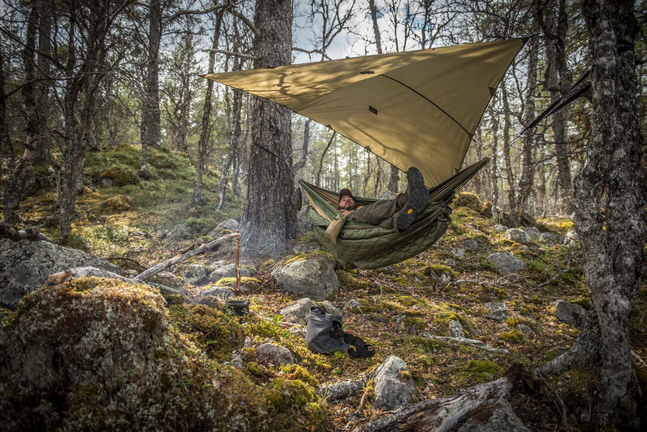 Створення притулку в дикій природі може мати вирішальне значення для виживання в найсуворіших погодних умовах, таких як сильний дощ або снігова буря. У таких ситуаціях наш SUPERTARP SMALL може стати ідеальним матеріалом для будівництва імпровізованого, але міцного даху над головою. Це легке, поліестерове, прямокутне полотно захистить вас від снігу та дощу тощо, а при необхідності може стати чудовою основою для будівництва замаскованого спостережного пункту. Численні отвори для кріплення дозволяють створювати багато типів укриттів, використовуючи лише шматок мотузки та кілки для намету. Завдяки малій вазі SUPER TARP SMALL у складеному вигляді можна носити в рюкзаку під час кожного походу.