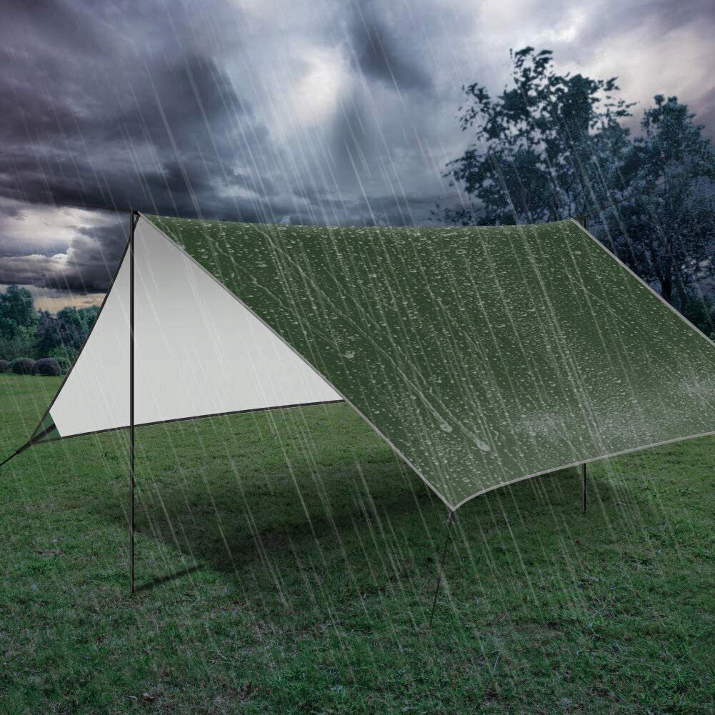 - Брезент для кемпінгу виготовлено з водонепроникної поліефірної тканини водонепроникної PU1500m, яка має чудову стійкість до ультрафіолету, стирання та водонепроникність.