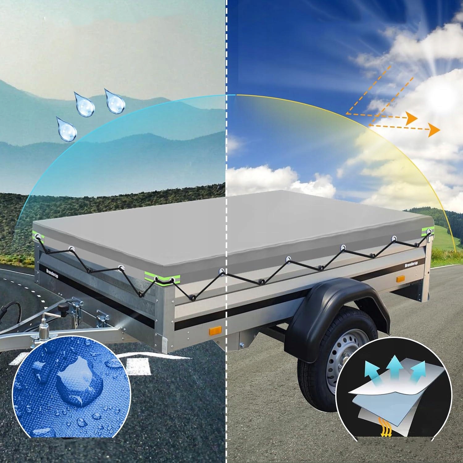 restive. PU RIPSTOP PU, покритий поліефром, який захищає причіп від пилу, сонячного світла, дощу та інших елементів, забезпечуючи довговічну міцність. Завдяки додатковому покриттю, стабілізованому УФ -променями, воно затримує старіння, спричинене УФ -променями, і продовжує термін експлуатації покривалості інвалідного візка, що виживе всі сезони. Він не порушується навіть при низьких температурах. Його можна витерти вологою тканиною або промивати водою. Після очищення складіть його і помістіть у сумку для зберігання, щоб полегшити зберігання та перенесення, не маючи занадто багато місця. Обкладинка Тура та 1 шт. Мотузки, не включають причепи, інструменти та інші.