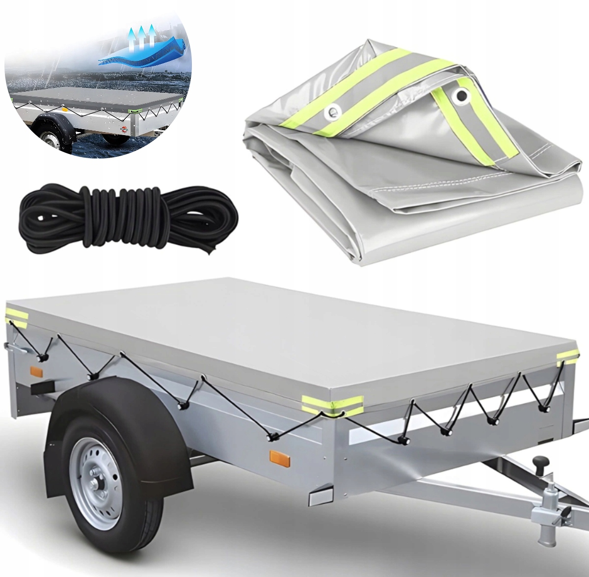 ✔ Повний монтажний комплект – наш брезент постачається з мотузкою, тож вам не доведеться купувати додаткові аксесуари. Ваш трейлер безпечно закрито в найкоротші терміни.
