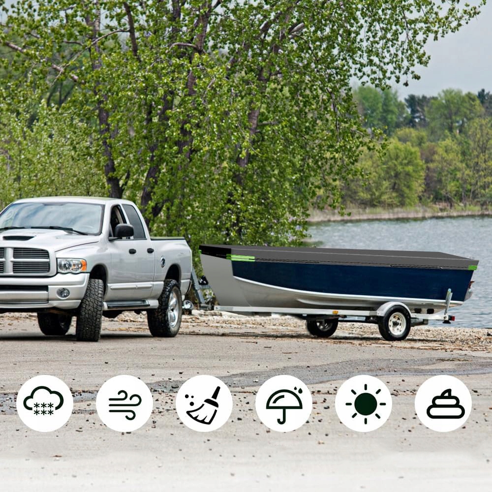 ✅ 【Водонепроникна обробка】: Кришка причепа виготовлена лише з товстої, водонепроникної тканини 420D, різання краю та конструкції. Металеві очі, 4 куточки брезенту підкріплюються понад 3 -кратним матеріалом. Шви чисті, сильніші та ближче до кулонів, їх нелегко окислювати і не деформуватися, а кришка причепа може бути використана знову.