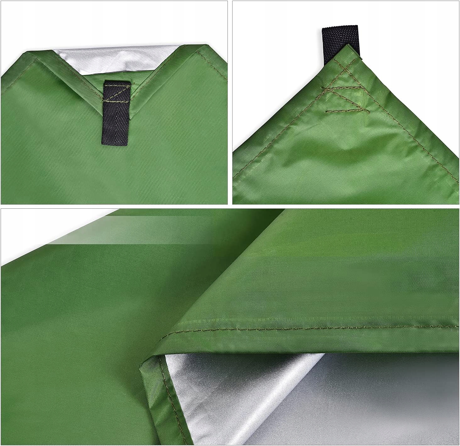🏕️【ВОДОСТІЙКИЙ ТА ЗАХИСТ ОТ СОНЦЯ】 Водонепроникна поверхня та посріблена внутрішня частина забезпечують чудову водонепроникність та захист від сонця. Краплі дощу не залишаться на мобільному будинку. Внутрішній шар, покритий сріблом, може ефективно блокувати більшість УФ-променів і запобігати сонячним опікам і тепловим ударам. Брезент для кемпінгу також можна використовувати як килимок для пікніка або намету.