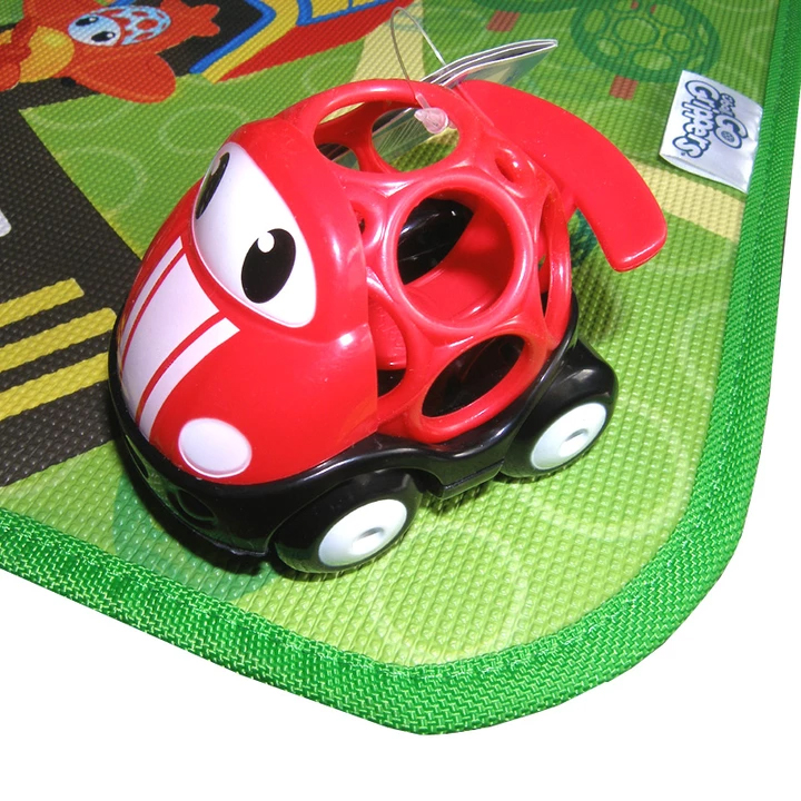 OBALL Go Grippers Килимок з іграшковими машинками - величезний простір для гри! У набір входить килимок з м'якого і в той же час міцного поролону розміром 180х120 см і 6 транспортних засобів цієї серії. Килимок зручний і теплий. Розкладений на підлозі, він стане основою міста Обал із цікавими будівлями та вулицями. Подорожуючи по ньому на різних транспортних засобах, будуючи додаткові споруди або встановлюючи доріжки чи гірки із серії Oball, дитина розвиває свою уяву та велику моторику. Це його великий маленький світ!