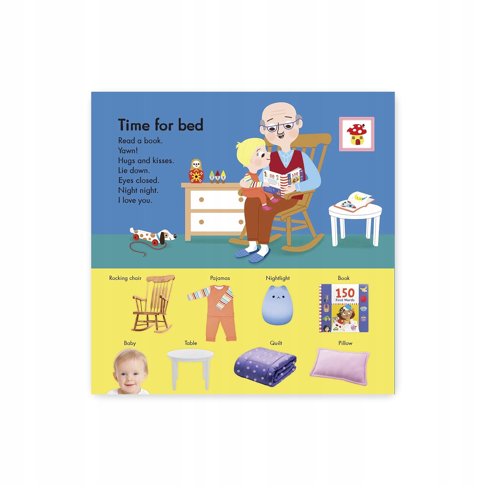 Книга містить понад 150 малюнків і фотографій, які спонукають дітей відкривати та вивчати назви предметів, тварин, кольорів та багатьох інших елементів навколишнього світу. Кожна сторінка наповнена яскравими та виразними малюнками та фотографіями, які допомагають поповнювати словниковий запас і розвивати уяву та пізнавальні навички вашої дитини. Книга навчає дітей не лише словам, а й простим фразам, які використовуються в повсякденному спілкуванні.